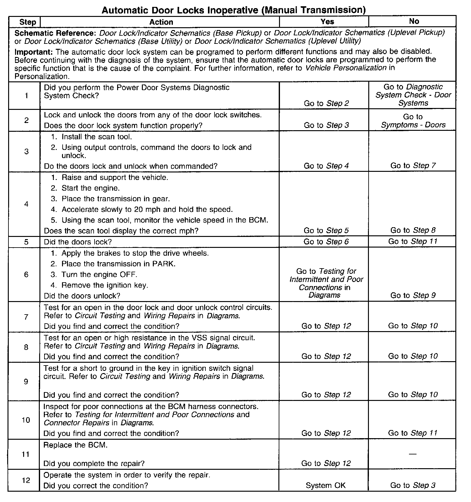 Automatic Door Locks - Inoperative (Manual Transmission)