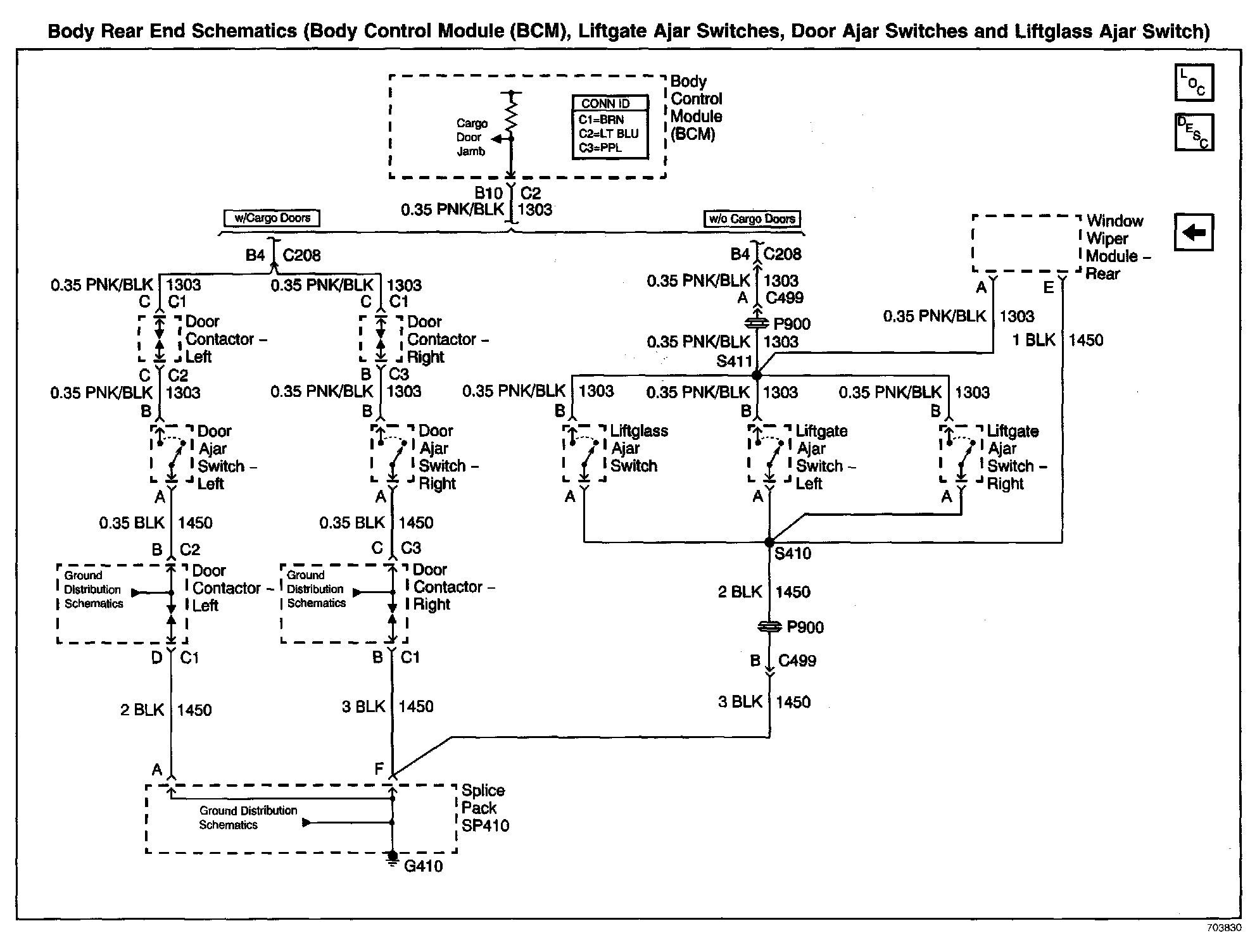 Body Rear End Schematics: Body Control Module (BCM), Liftgate Ajar Switches, Door Ajar Switches and Liftglass Ajar Switch: