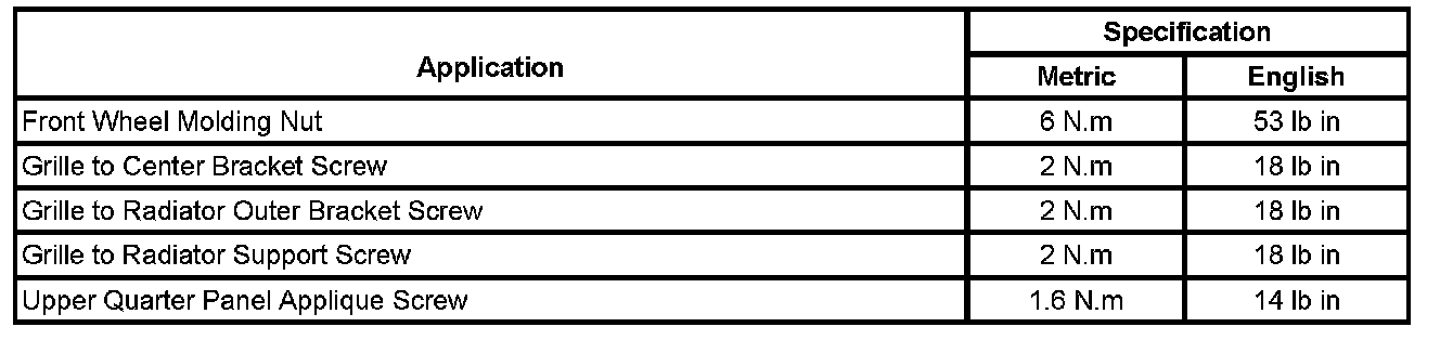 Exterior Moulding / Trim: Specifications