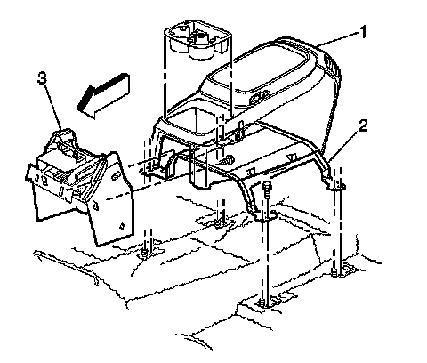 4. Remove the 2 screws retaining the center console (1) to the console extension (3).