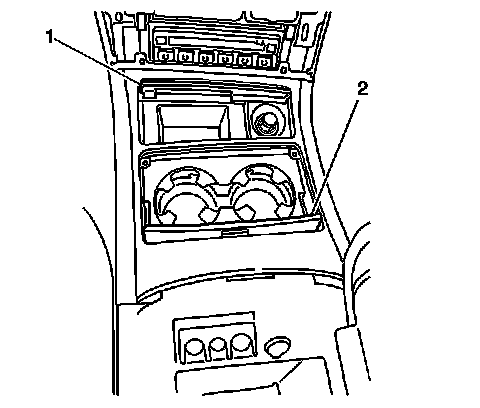 Important: The ashtray lid (1) and cupholder lid (2) must be in the open position.