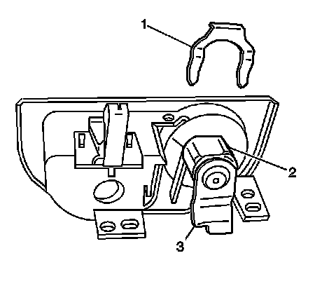 5. Remove the lock cylinder retaining clip (1) from the latch assembly.