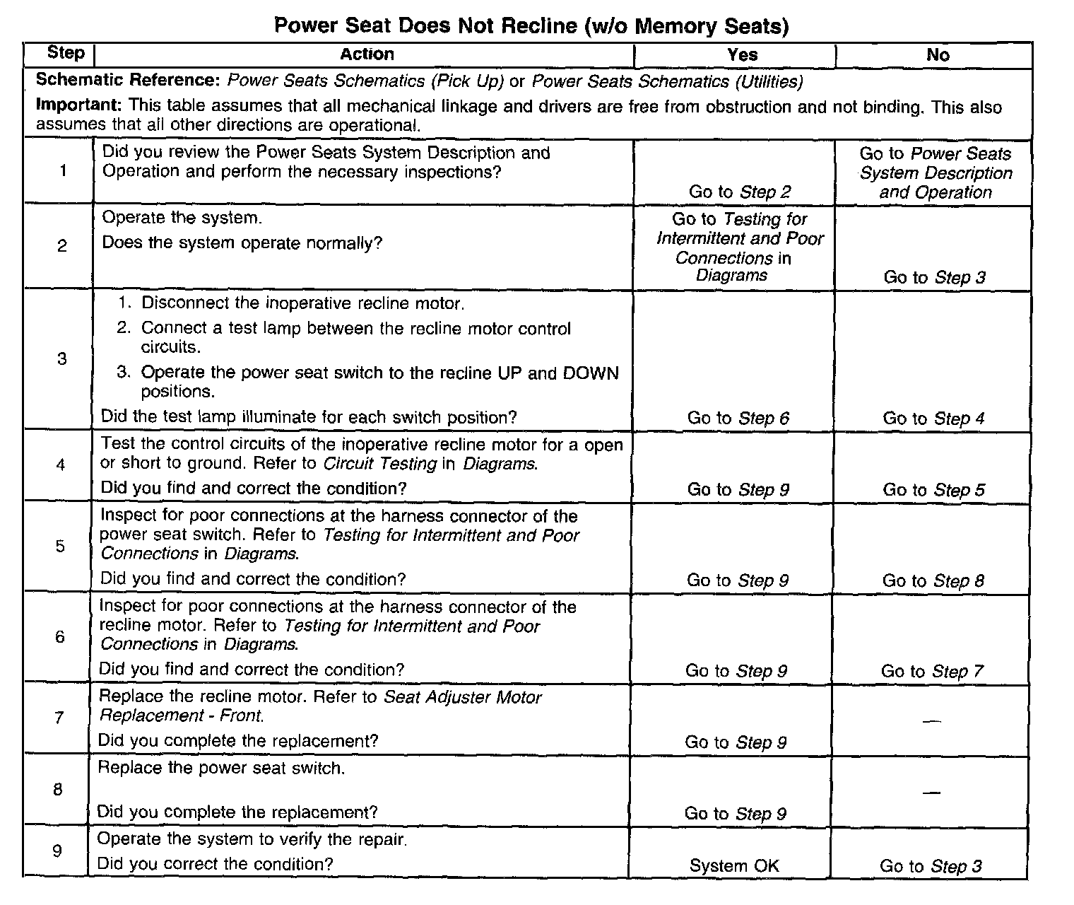 Power Seat Does Not Recline (Without Memory Seats)