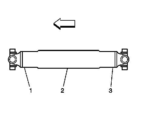 7. Beginning at the rear-most position and working forward, record the runout measurement at the rear (3), the center (2), and the front (1) of the rear propeller shaft.
