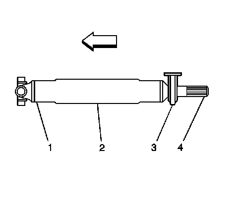 13. Beginning at the rear-most position and working forward, record the runout measurement at the stub shaft (splines) (4), the center (2), and the front (1) of the front propeller shaft.