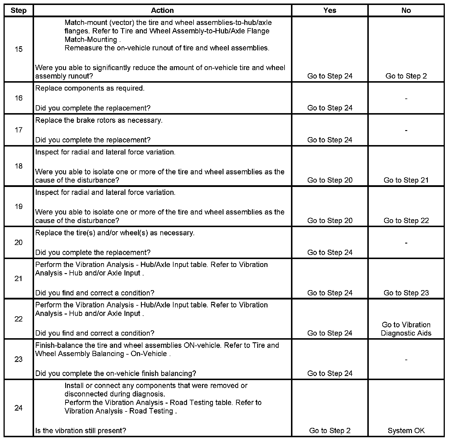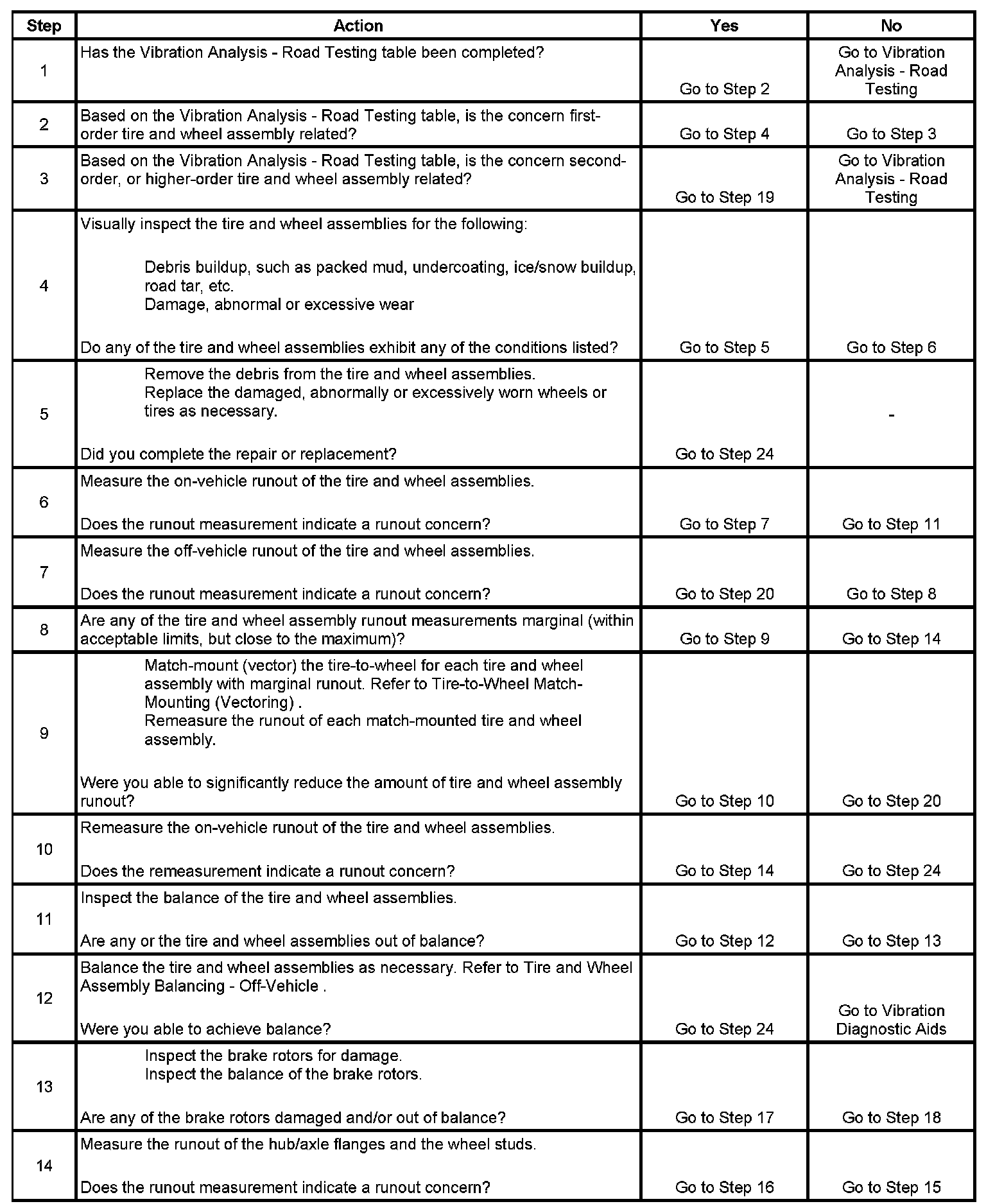 7. Tire and wheel assemblies that exhibit excessive runout when measured off of the vehicle could cause a vibration disturbance.