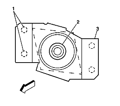 2. Remove the frame bolt (2) from the frame crossmember nut.