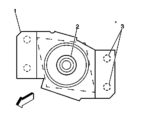 3. Break away the spot welds (1) on one side of the frame crossmember nut retainer with an air chisel.