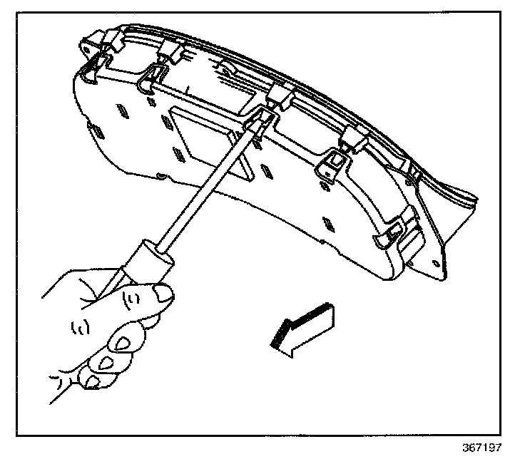 2. Unclip the IP cluster rear cover plate by prying gently on the tabs with a screwdriver.
