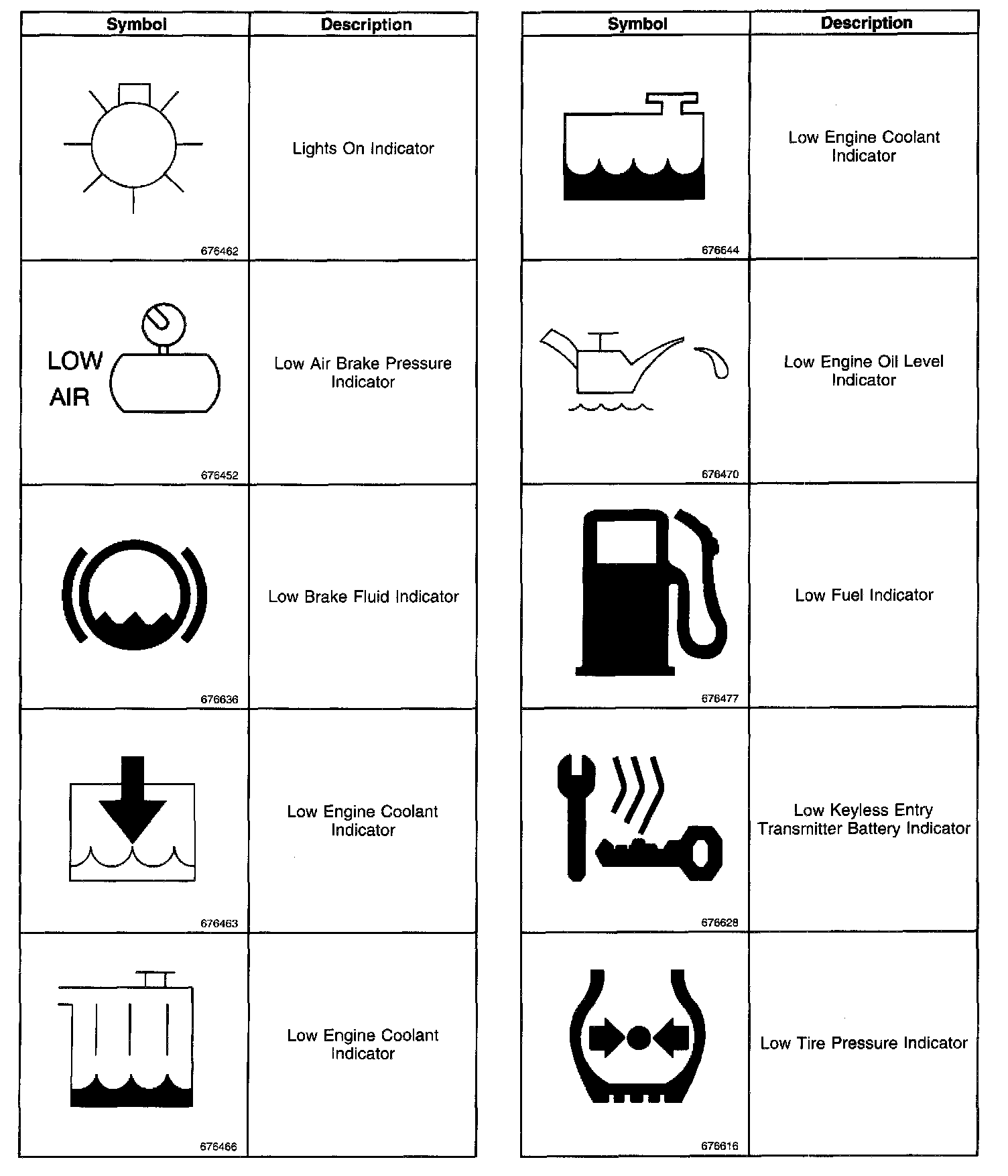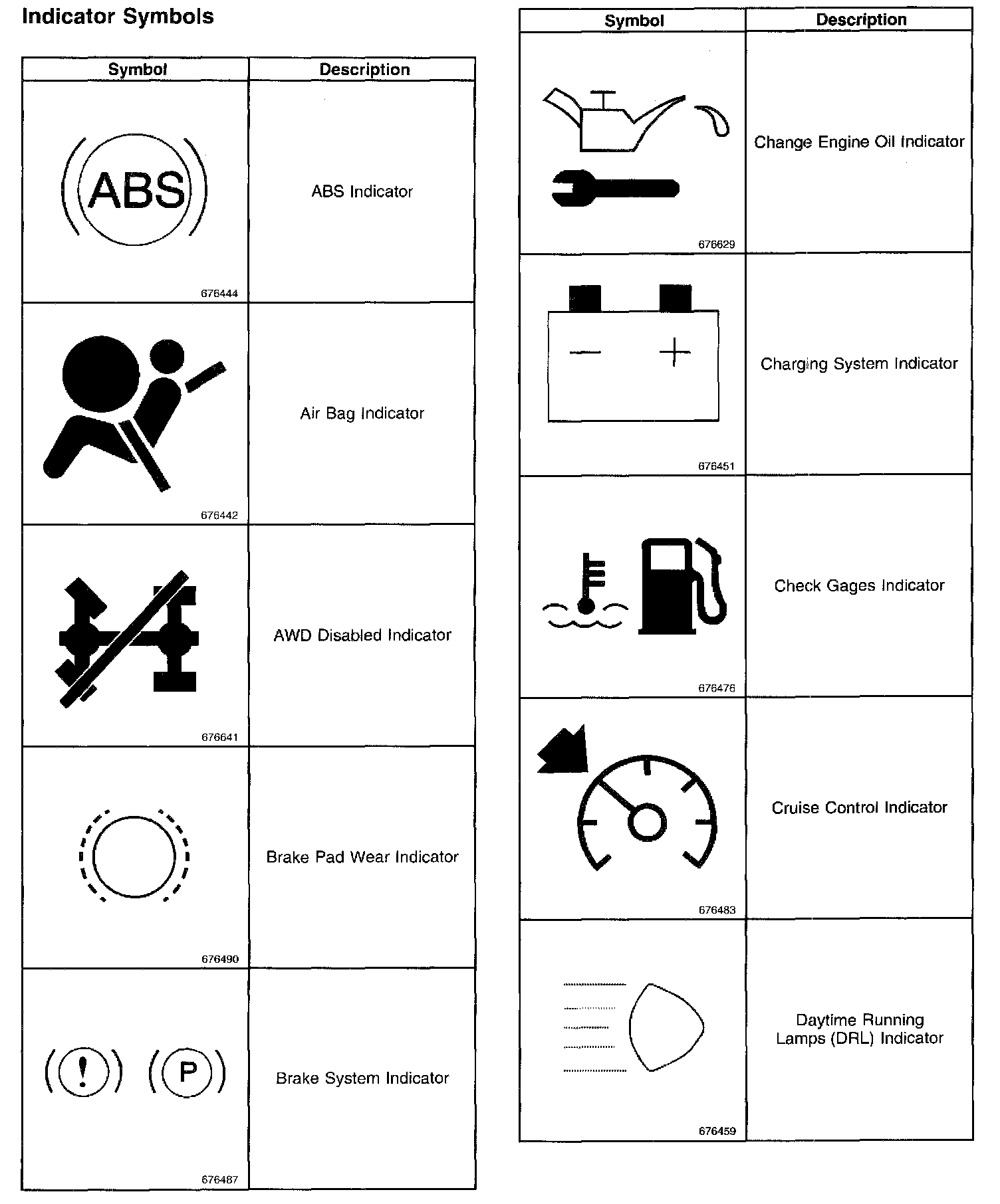 Instrument Panel, Gauges and Warning Indicators: Application and ID