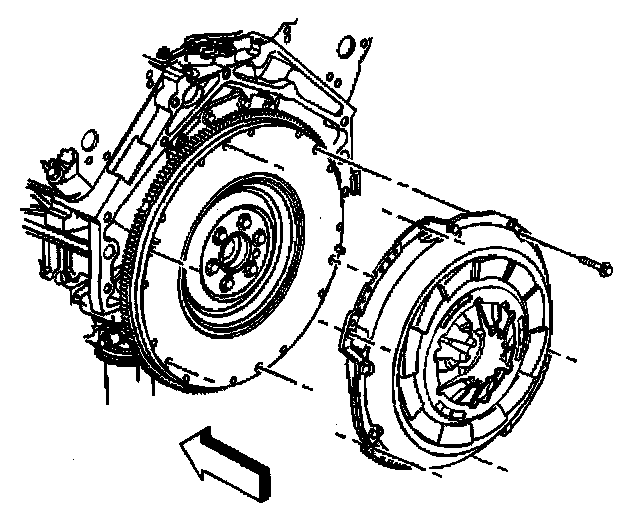 13. Install the disc and clutch pressure plate and bolts until snug, if equipped.