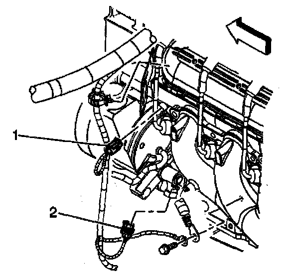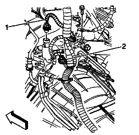 34. Disconnect the Manifold Absolute Pressure (MAP) sensor (1) and knock sensor (2) electrical connectors.