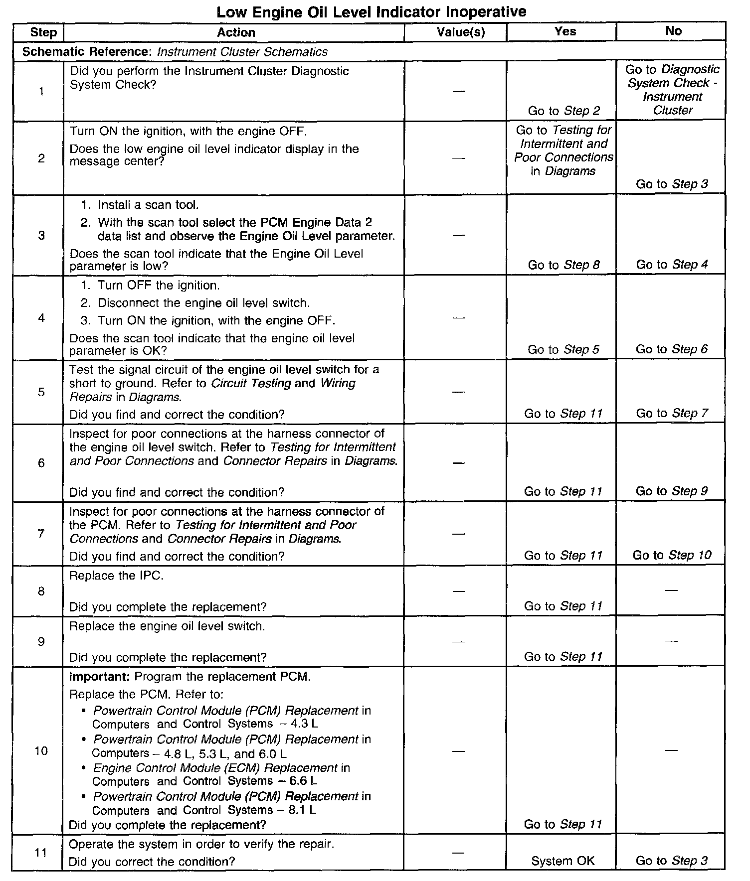 Low Engine Oil Level Indicator Inoperative