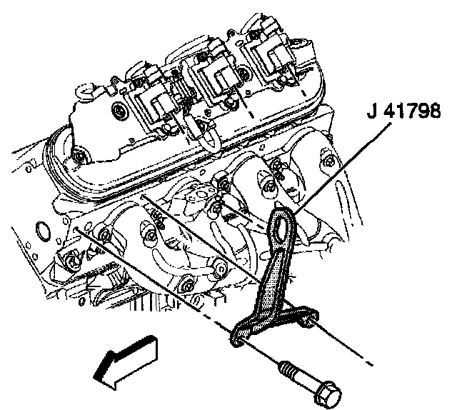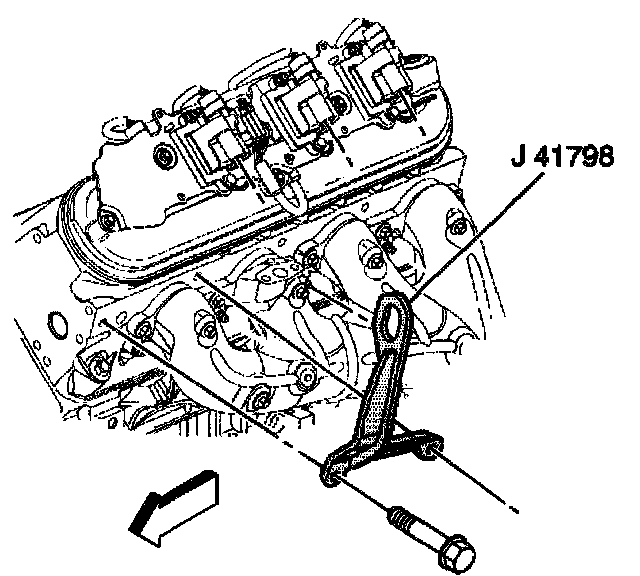 57. Remove the ignition coil(s) (as required) for the proper fit of the J 41798 before lifting the engine.