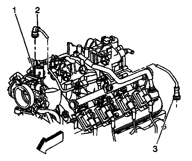 - Remove the EVAP tube end (3) from the vapor pipe.