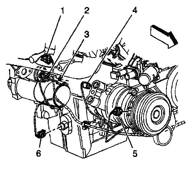 41. Reposition the harness ground, and engine ground strap from the block.42. Disconnect the following electrical connectors: