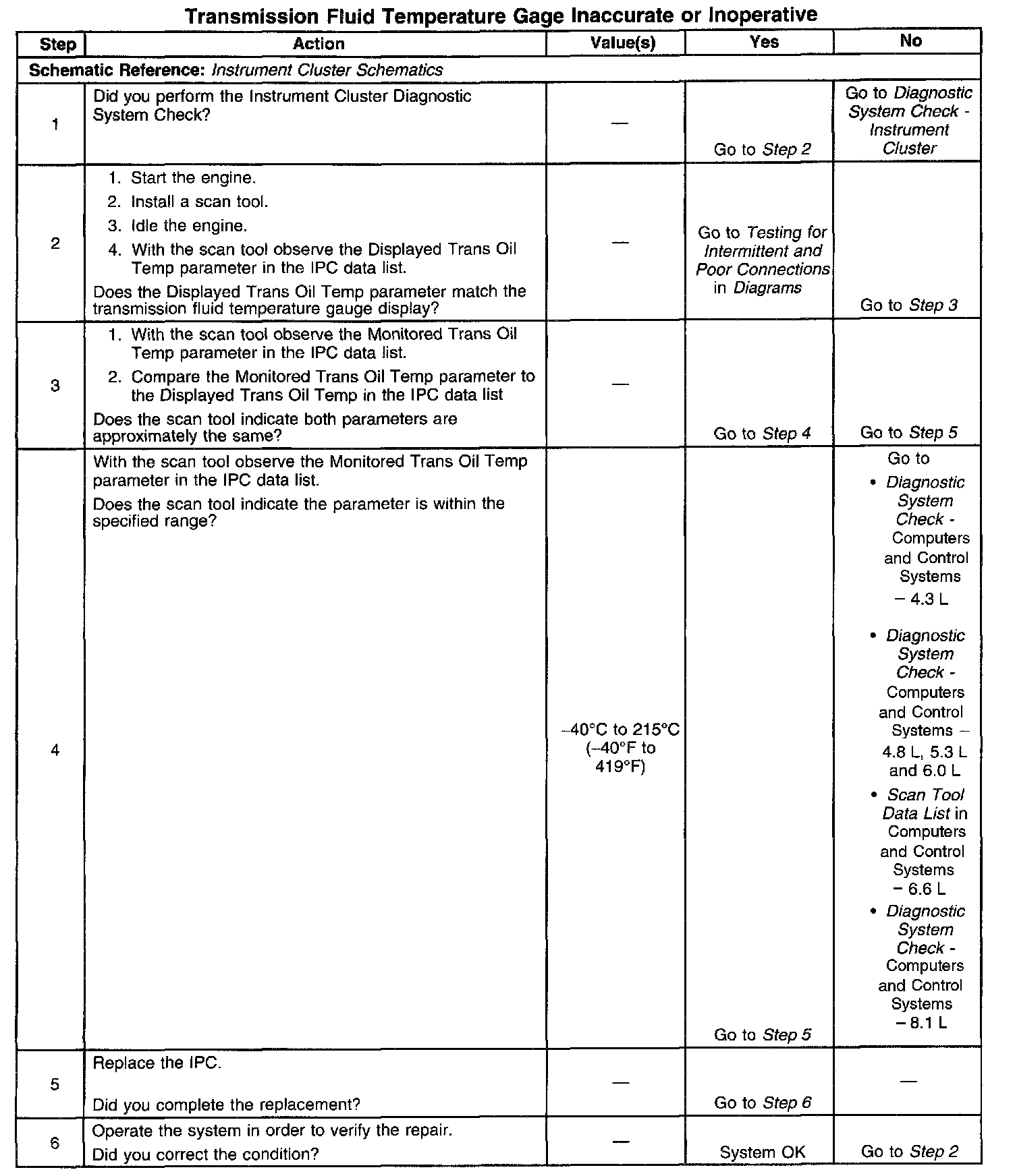 Transmission Fluid Temperature Gauge Inaccurate or Inoperative