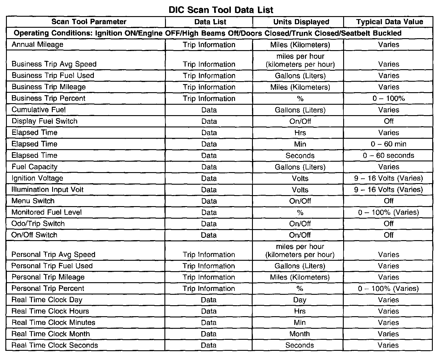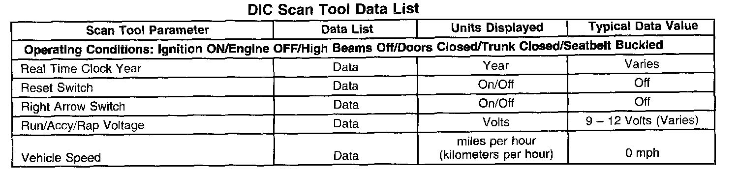 Scan Tool Data List - Driver Information Center (DIC)