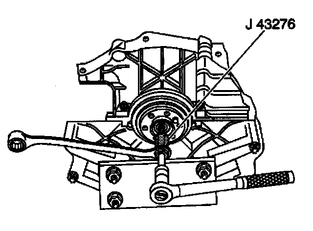 Notice: When using the J 43276 Clutch Pilot Bearing Remover always secure the J 43276-1 Clutch Pilot Bearing Remover tool body using a wrench. Do not allow the J 43276-1 tool body to rotate. Failing to do so will cause damage to the J 43276-1 tool body.