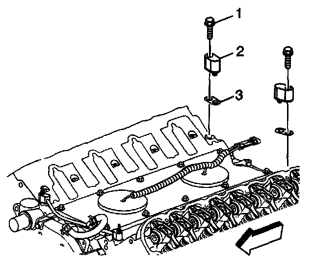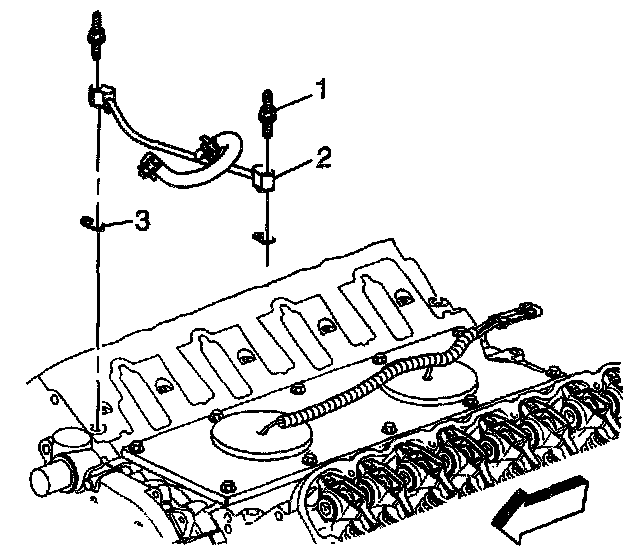 1. Disconnect the knock sensor wire harness retaining clips from the pipe.