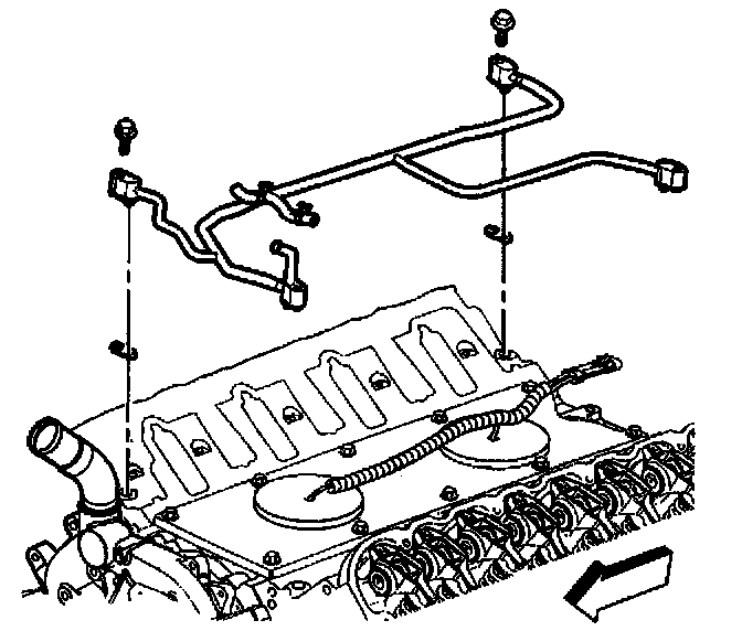 1. Disconnect the knock sensor wire harness retaining clips from the pipe.