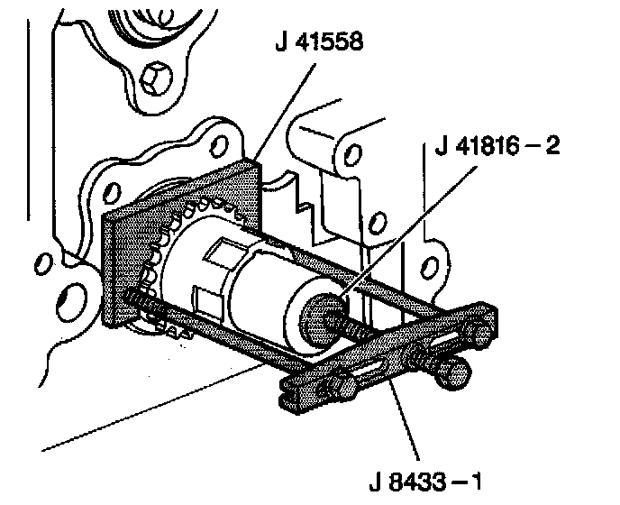 3. Use the J 8433- 1, the J 41816-2, and the J 41558 in order to remove the crankshaft sprocket.