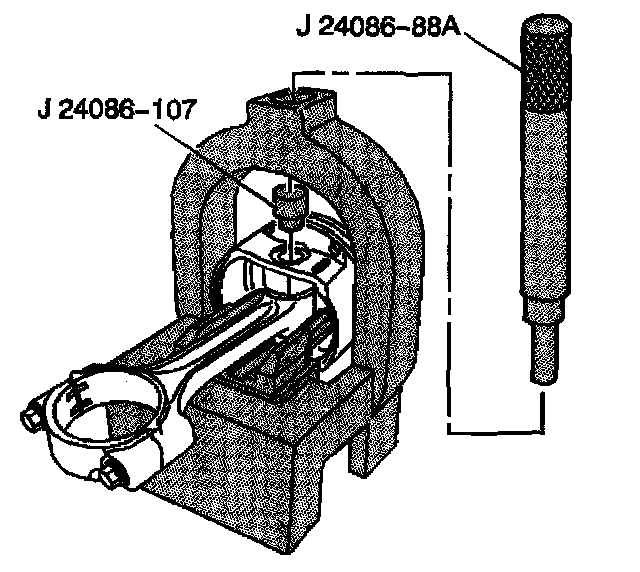 4. Install J 24086-107 into the piston pin and J 24086-88A through the fixture and into J 24086-107.