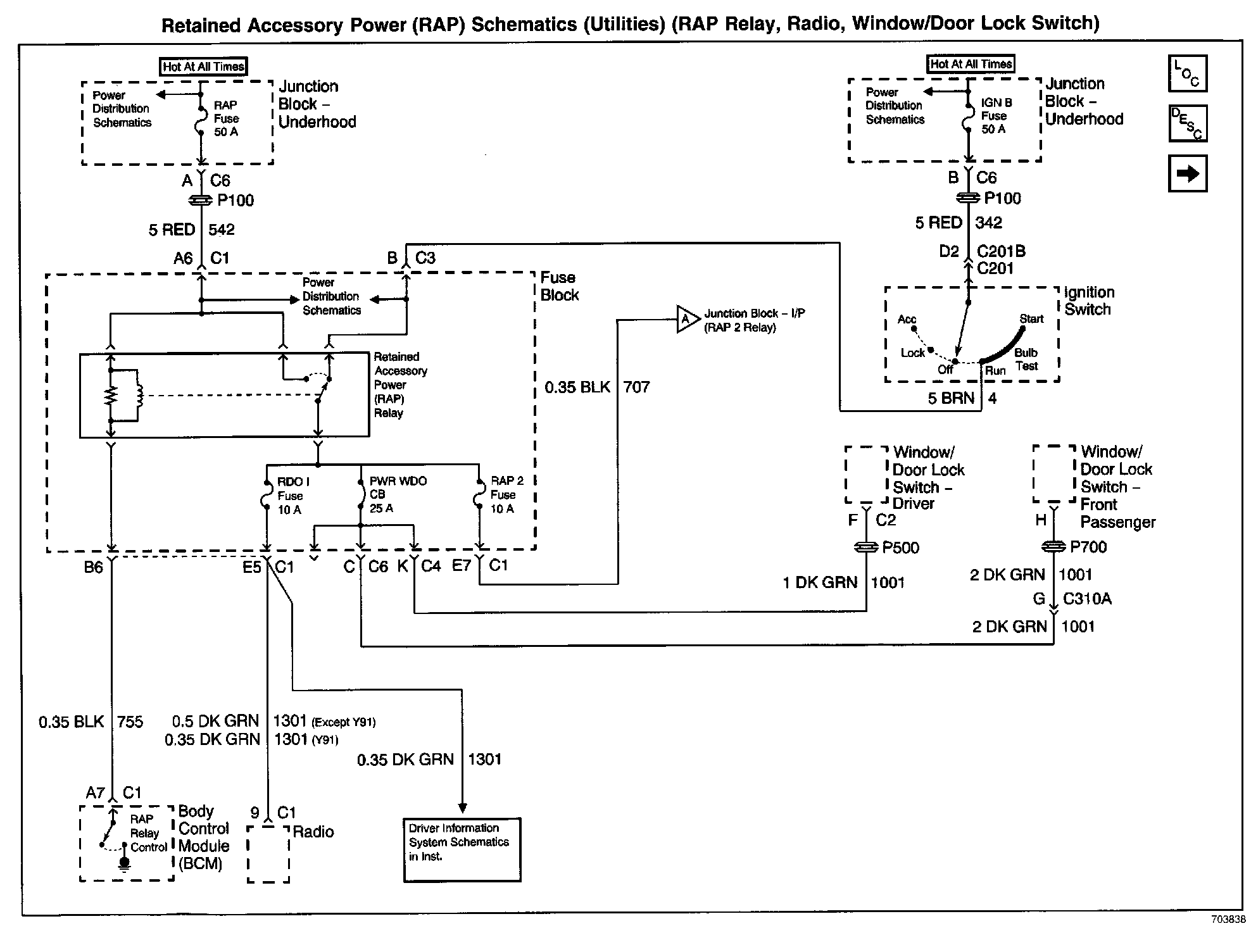 Retained Accessory Power (RAP) Schematics: Utilities (RAP Relay, Radio, Window/Door Lock Switch):