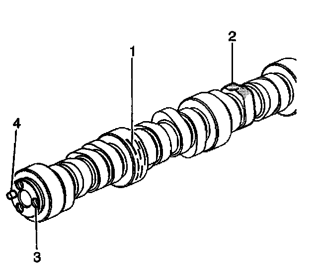 4. Inspect the camshaft valve lifter lobes (2) for scoring or excessive wear.