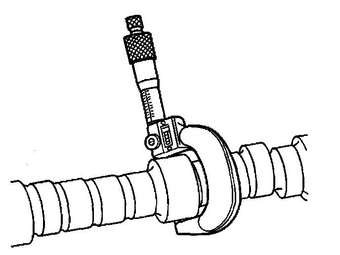11. Measure the camshaft journals for wear and out-of-round with a micrometer,