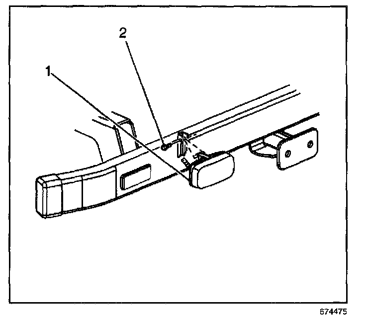 1. Remove rear fog lamp retaining bolt (2) from the fog lamp bracket.