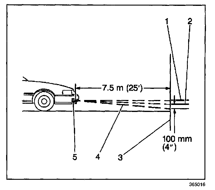 6. Adjust the fog lamp so that the top edge of the fog lamp beam pattern is 100 mm (4 in) below the horizontal centerline.