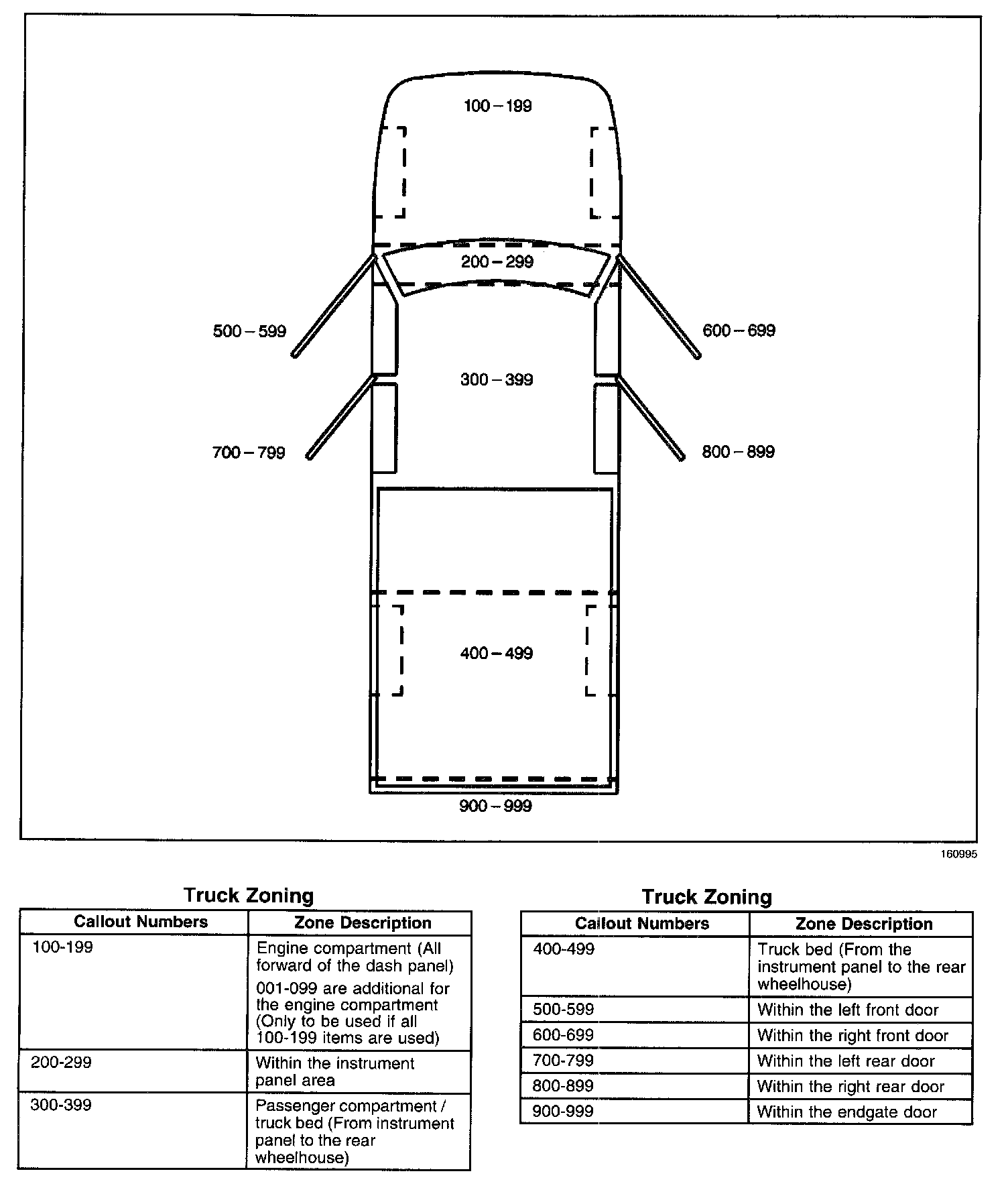 All grounds, in-line connectors pass-through grommets, and splices have identifying numbers that corresponds to where they are located in the vehicle. The following table explains the numbering system.