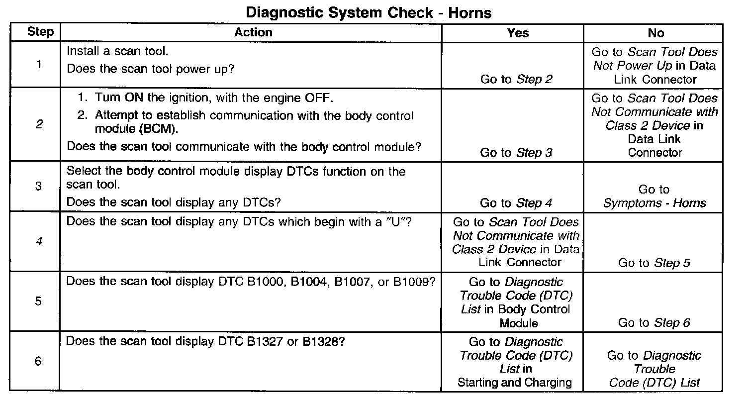 The number(s) below refer to the step number(s) on the diagnostic table.