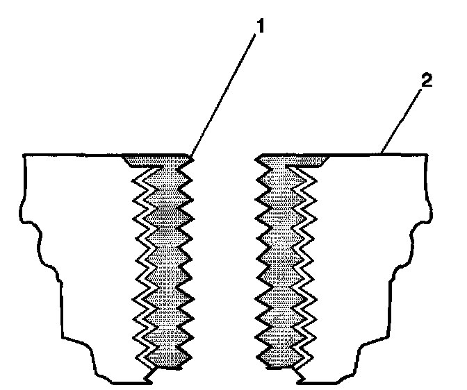 11. Apply threadlock Loctite 277, J 42385-109 (1), or equivalent to the insert OD threads (2).