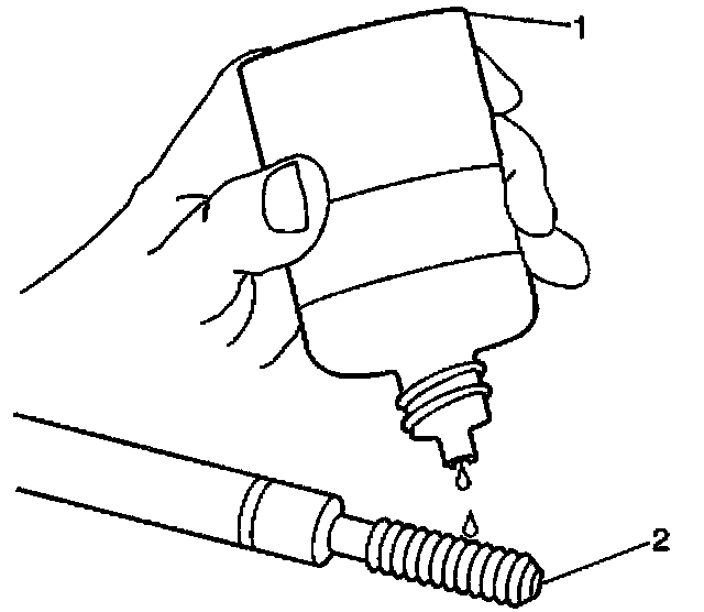 18. Apply threadlock Loctite 277, J 42385-109 (1), or equivalent to the insert OD threads (2).