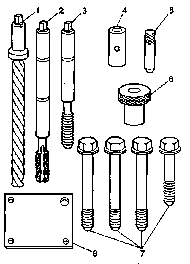 Important: The use of a cutting type fluid GM P/N 1052864, WD 40, or equivalent is recommended when performing the drilling and tapping procedures.