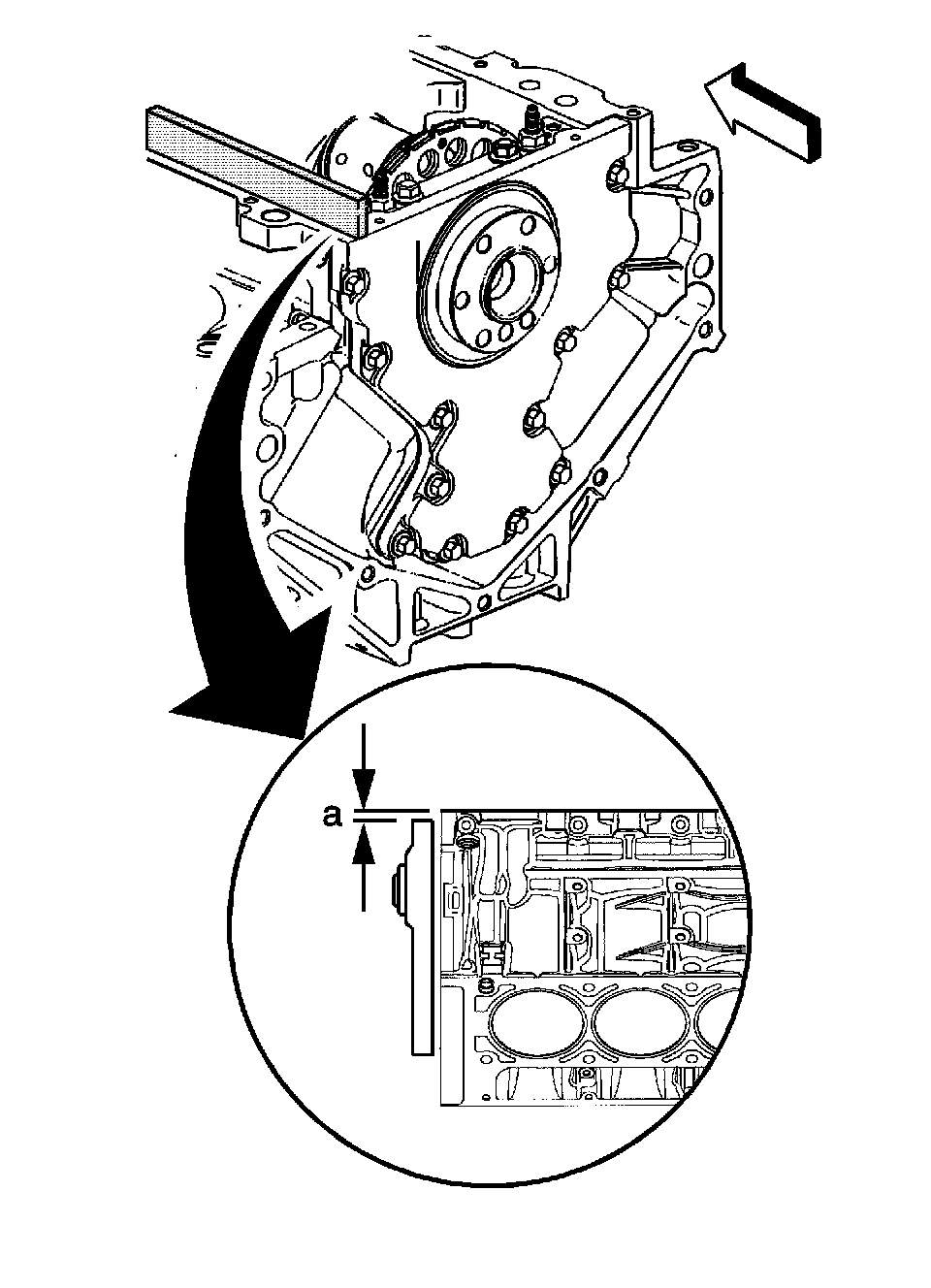 10.2. Insert a feeler gauge between the rear housing and the straight edge. The housing must be flush with the oil pan or no greater than 0.5 mm (0.02 in) below flush.