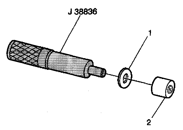 1. Install a 5/8 inch washer (1) onto the J 38836 or equivalent.