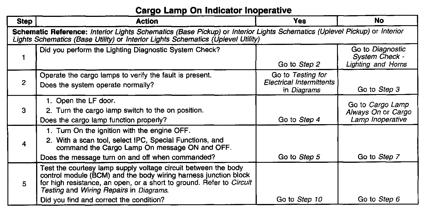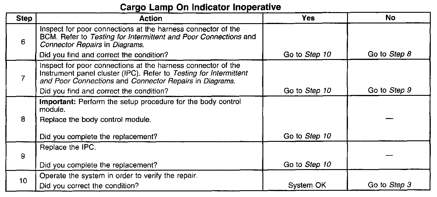 Cargo Lamp On Indicator Inoperative