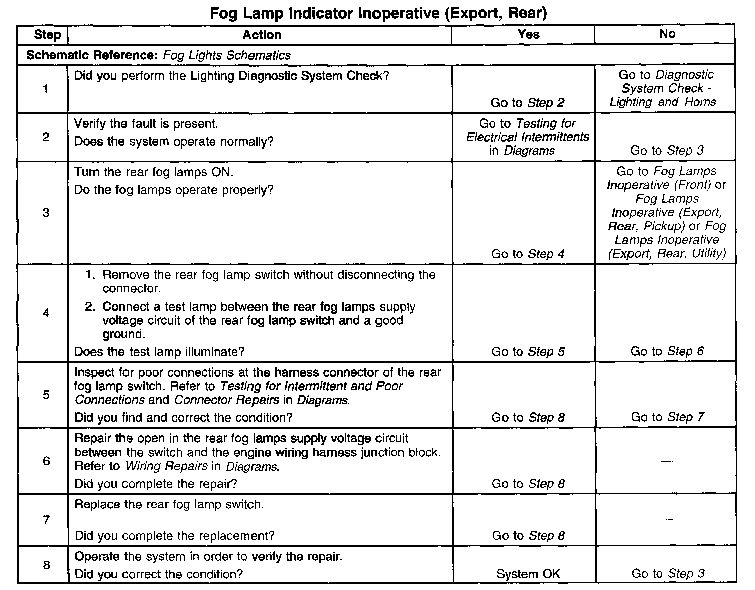 Fog Lamp Indicator Inoperative - Rear (Export)