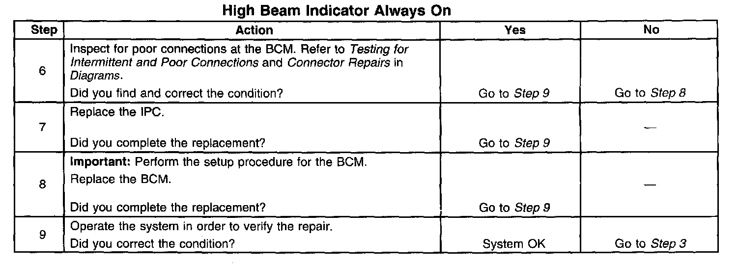 High Beam Indicator Always On