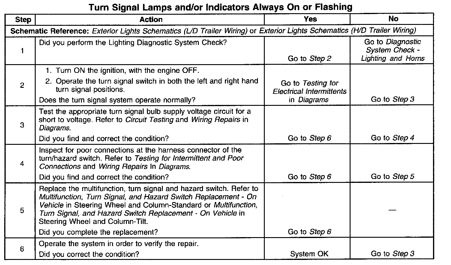 Turn Signal Lamps and/or Indicators Always On or Flashing