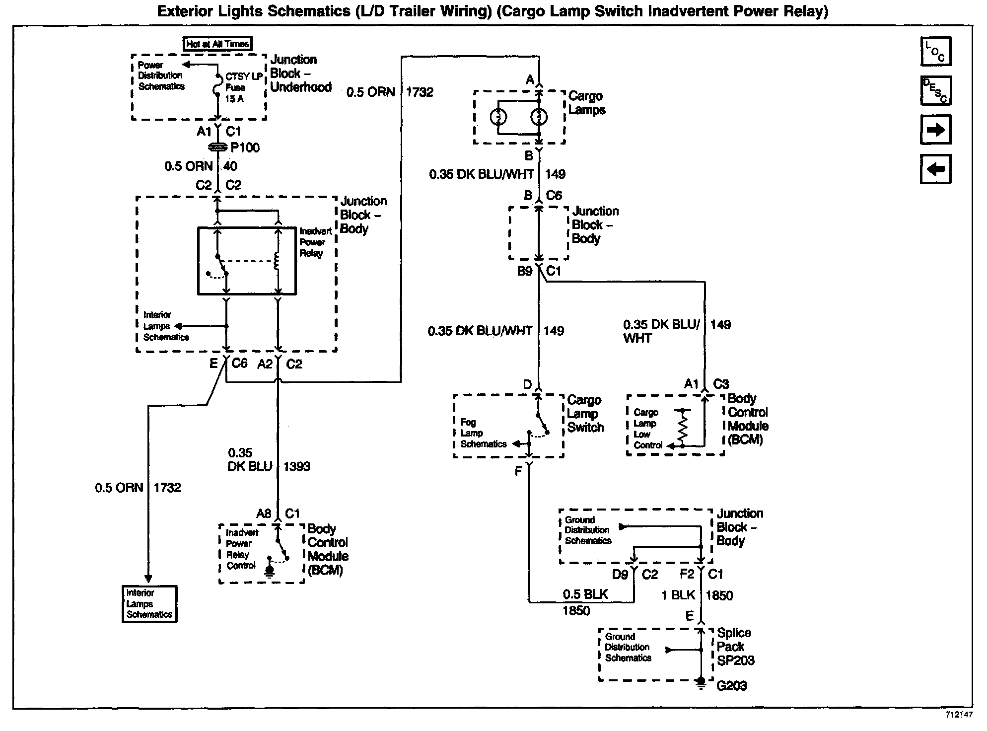Exterior Lights Schematics: L/D Trailer Wiring (Cargo Lamp Switch Inadvertent Power Relay):