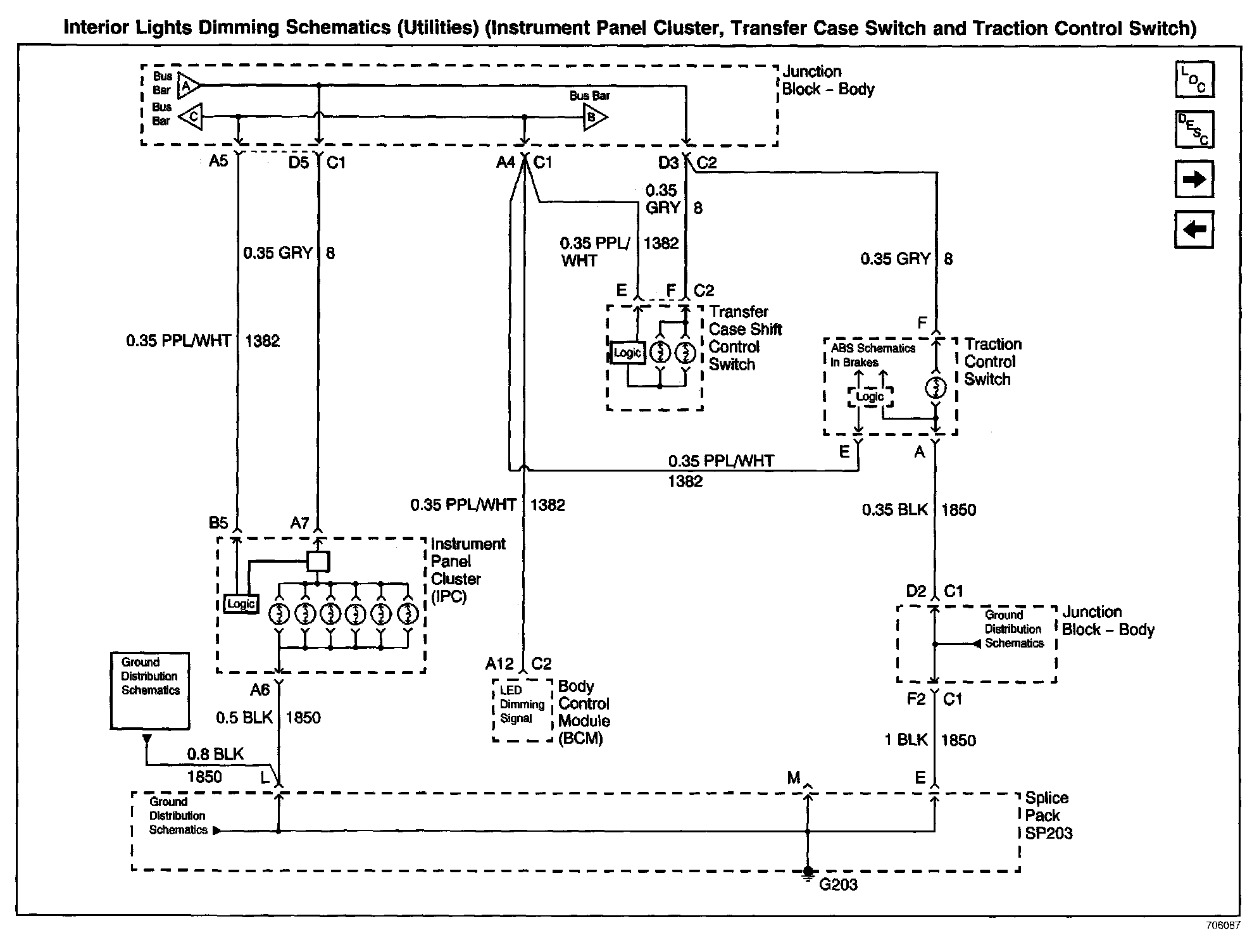 Interior Lights Dimming Schematics: Utilities (Instrument Panel Cluster, Transfer Case Switch And Traction Control Switch):