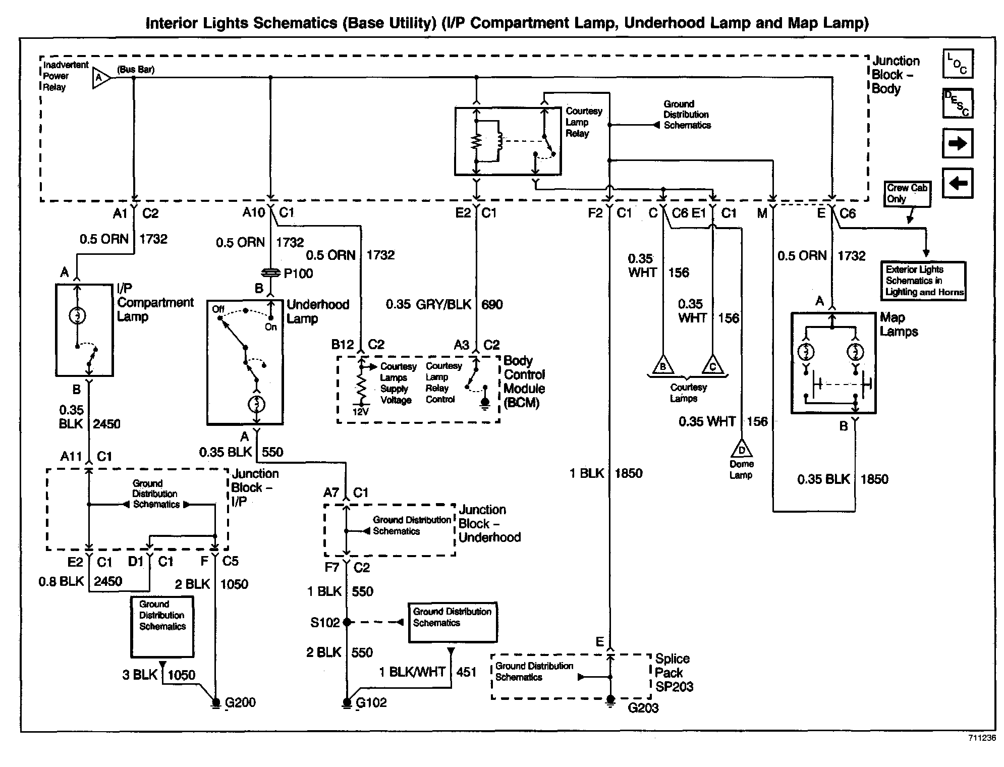 Interior Lights Schematics: Base Utility (I/P Compartment Lamp, Underhood Lamp And Map Lamp):