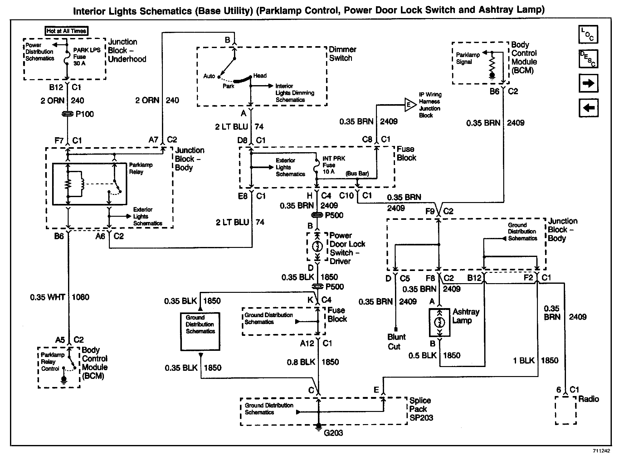 Interior Lights Schematics: Base Utility (Parklamp Control, Power Door Lock Switch And Ashtray Lamp):