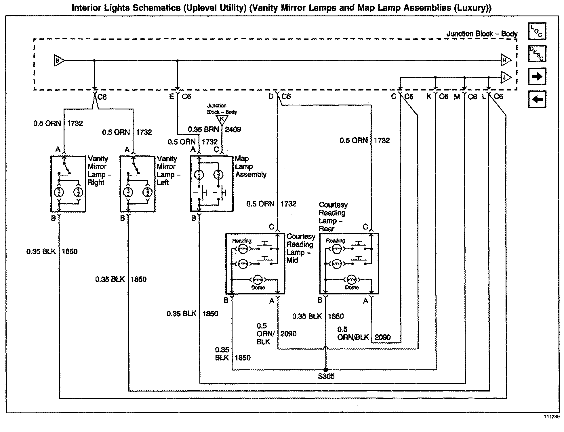 Interior Lights Schematics: Uplevel Utility (Vanity Mirror Lamps And Map Lamp Assemblies (Luxury)):