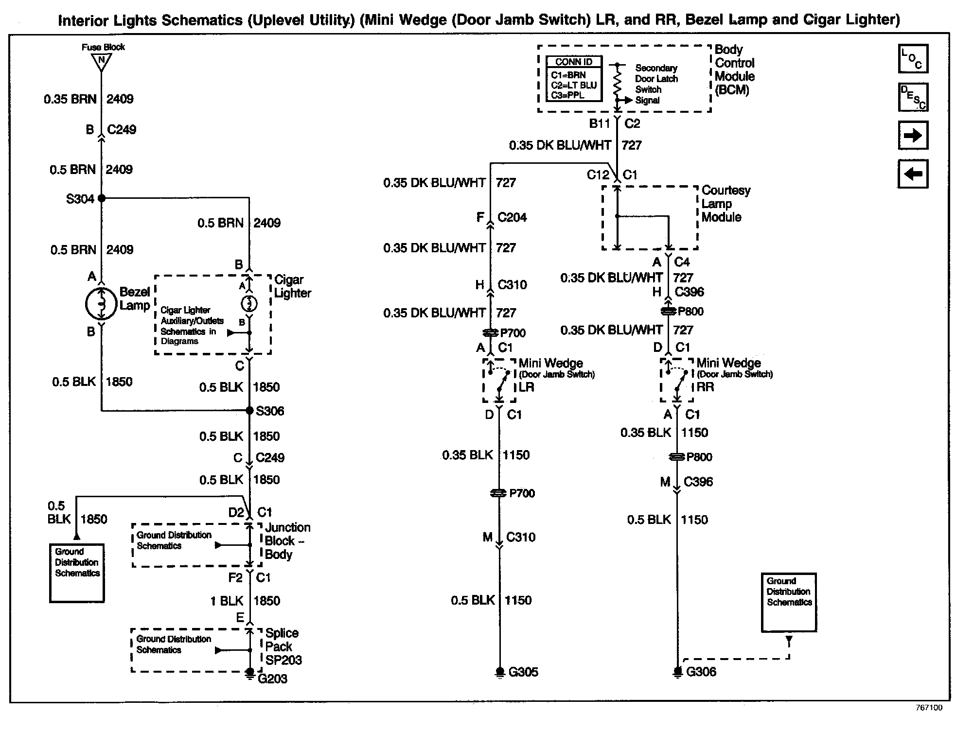 Interior Lights Schematics: Uplevel Utility (Mini Wedge (Door Jamb Switch) LR, And RR, Bezel Lamp And Cigar Lighter):