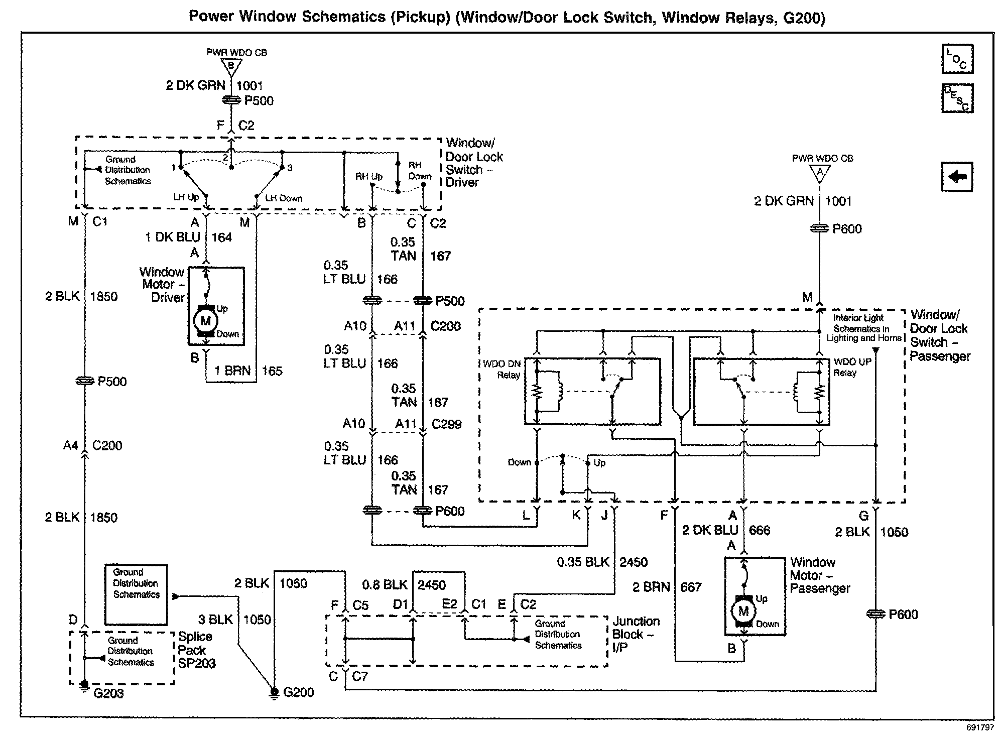 Power Window Schematics: Pickup (Window/Door Lock Switch, Window Relays, G200):